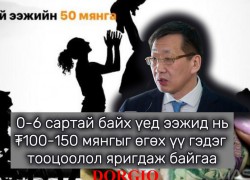 3 жилийн хугацаанд сар тутам ₮50 мянгыг өгөх үү эсвэл хүүхдийг 0-6 сартай байх үед ээжид нь ₮100-150 мянгыг өгөх үү гэдэг тооцоолол яригдаж байгаа