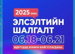 Элсэлтийн шалгалтын бүртгэл ирэх сарын 20-ны өдөр хүртэл үргэлжилнэ